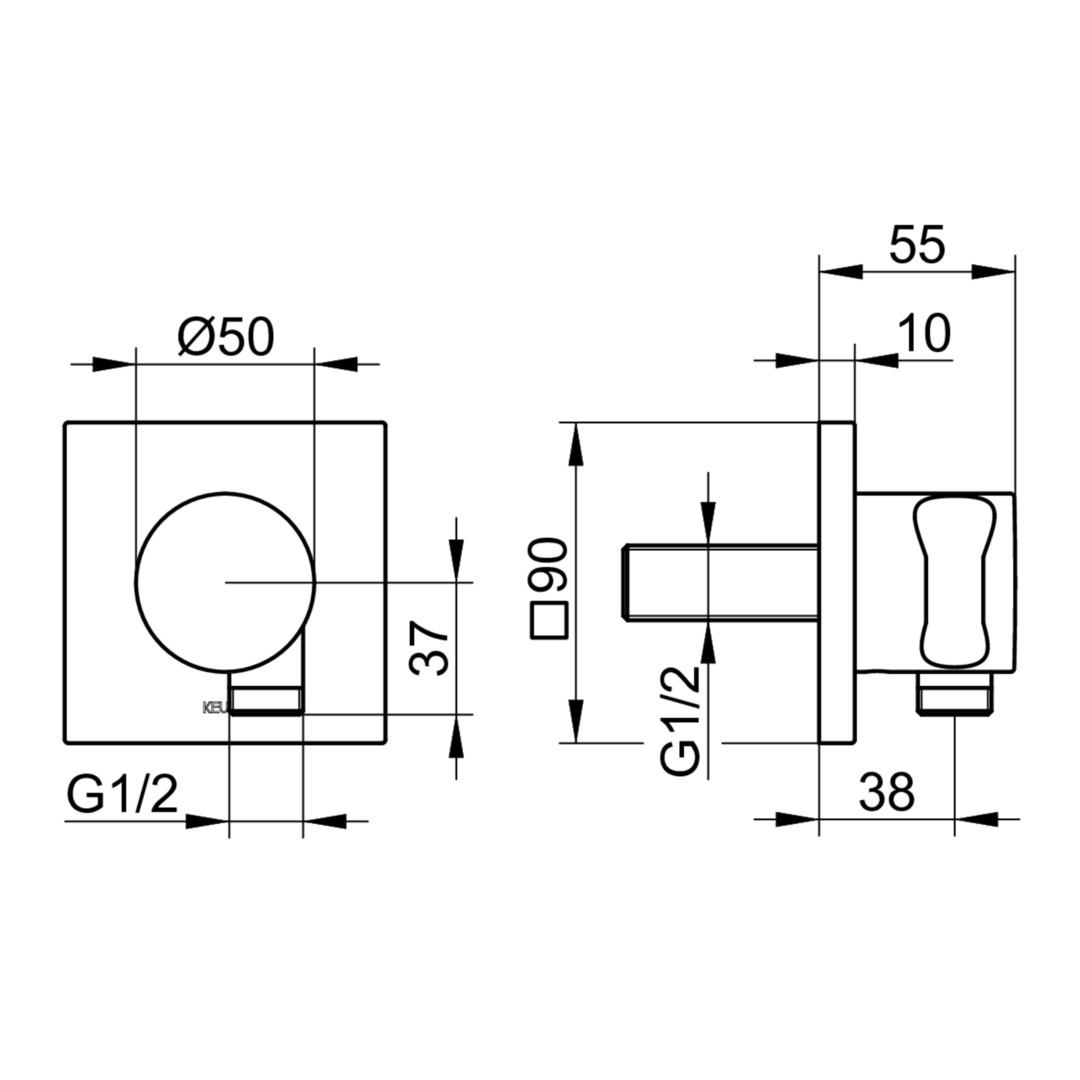 KEUCO Schlauchanschluss verchromt, Rosette eckig, mit Brausehalter KE59592010002