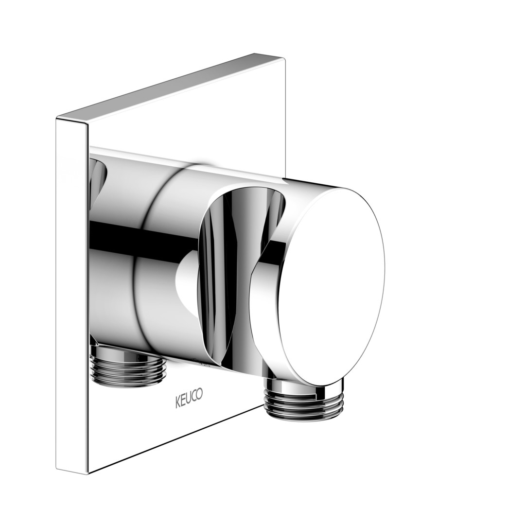 KEUCO Schlauchanschluss verchromt, Rosette eckig, mit Brausehalter