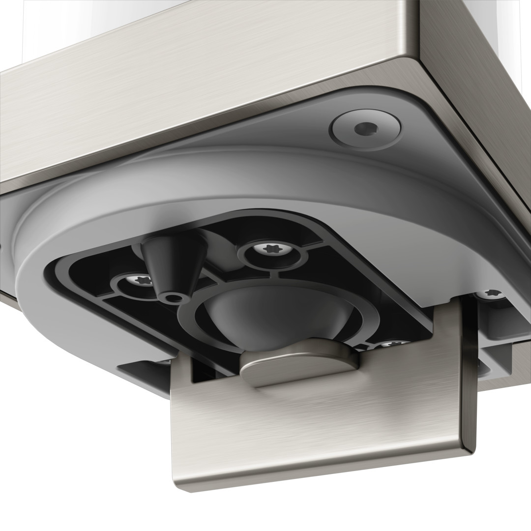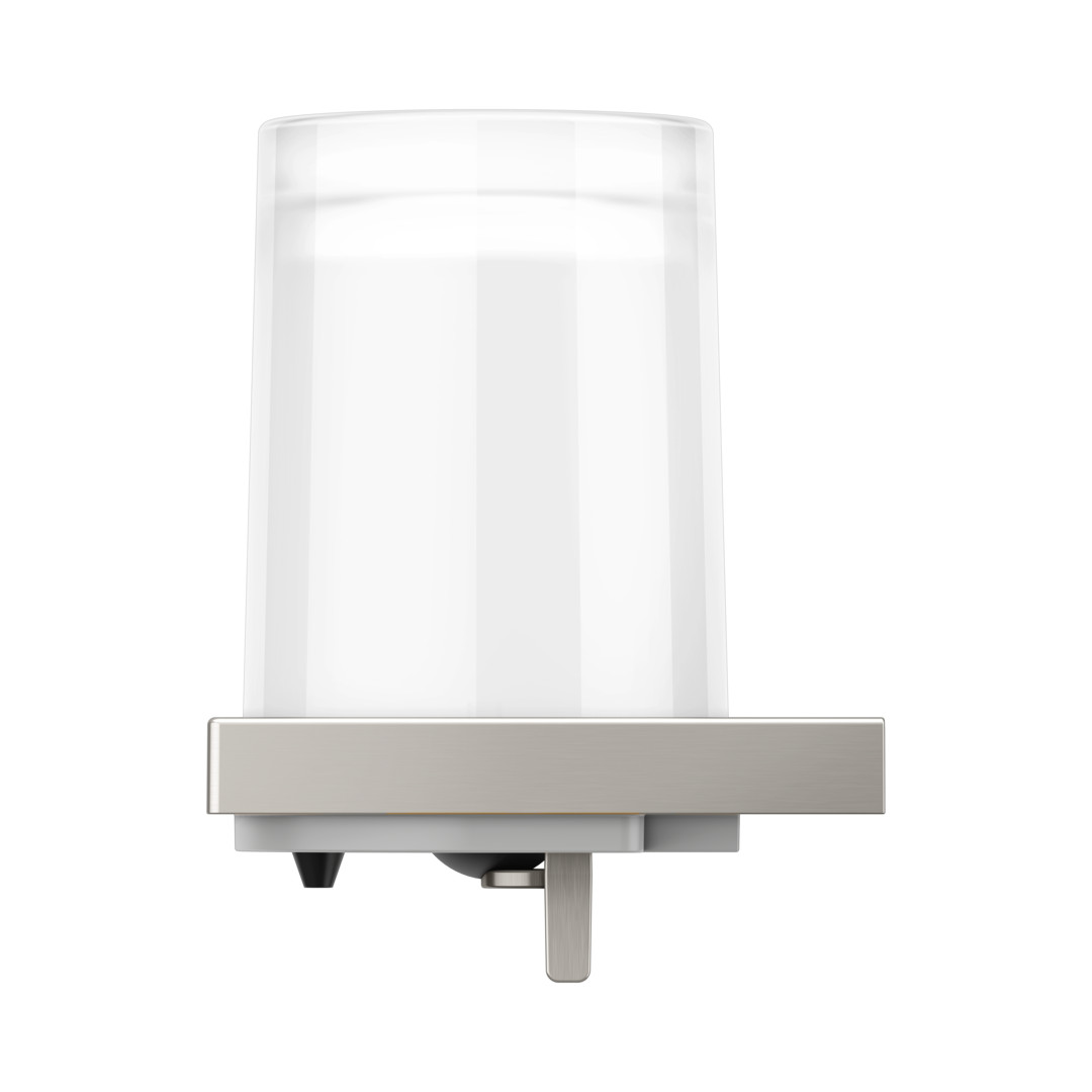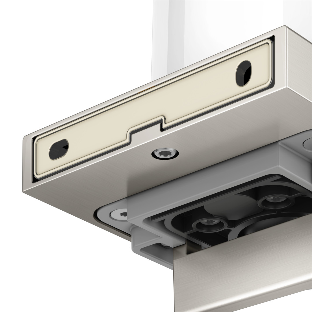 Füllmenge 180 ml, Dosiermenge 0,5 ml/Hub, Betätigung von unten, Befüllung von oben, Echtkristall-Stülpglas mattiert, verdeckte Befestigung, zum Schrauben, mit Befestigungs-Set