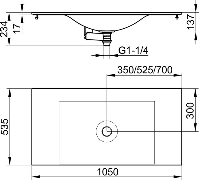 KEUCO Varicor-Einbauwaschtisch Edition 11 105 x 1,7 x 53,5 cm, ohne Hahnloch/Überlauf, weiß seidenmatt