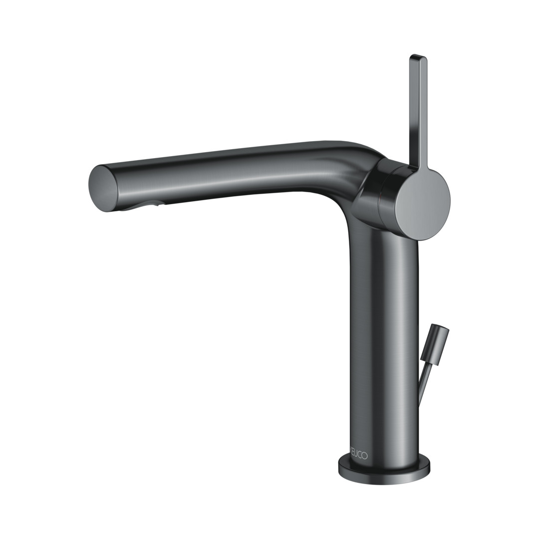 KEUCO Waschtisch-Einhebelmischer 150 Edition 400 Ausladung 153mm, mit Ablaufgarnitur, Schwarzchrom gebürstet