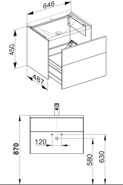 KEUCO Waschtisch-Unterschrank Royal Reflex 64,6x45x48,7cm, mit Frontauszug, anthrazit/anthrazit KE34050110000