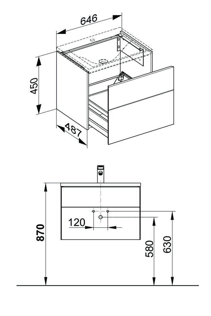 KEUCO Waschtisch-Unterschrank Royal Reflex 64,6x45x48,7cm, mit Frontauszug, anthrazit/anthrazit