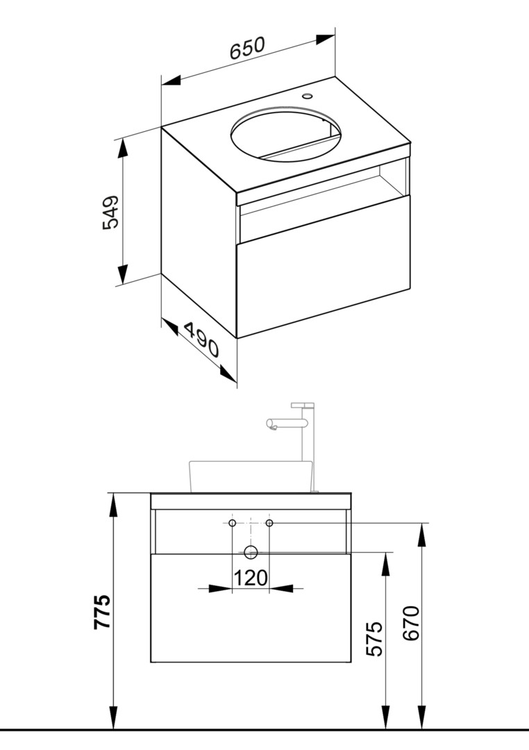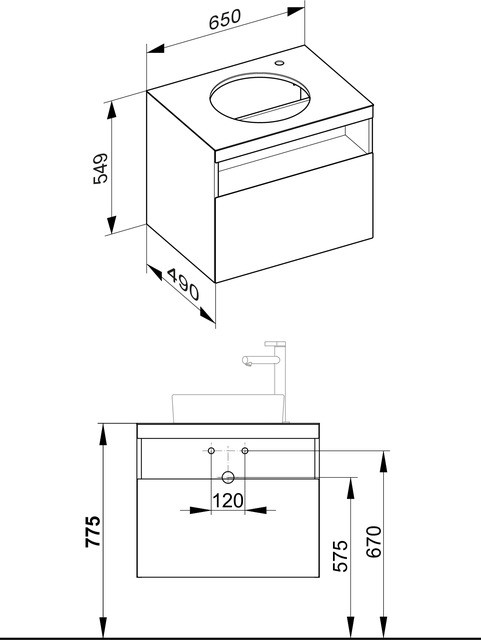 KEUCO Waschtisch-Unterschrank Stageline 65 x 55 x 49 cm, Dekor Cashmere, Glas Cashmere klar, ohne Elektrik, Hahnlochbohrung rechts KE32855180000