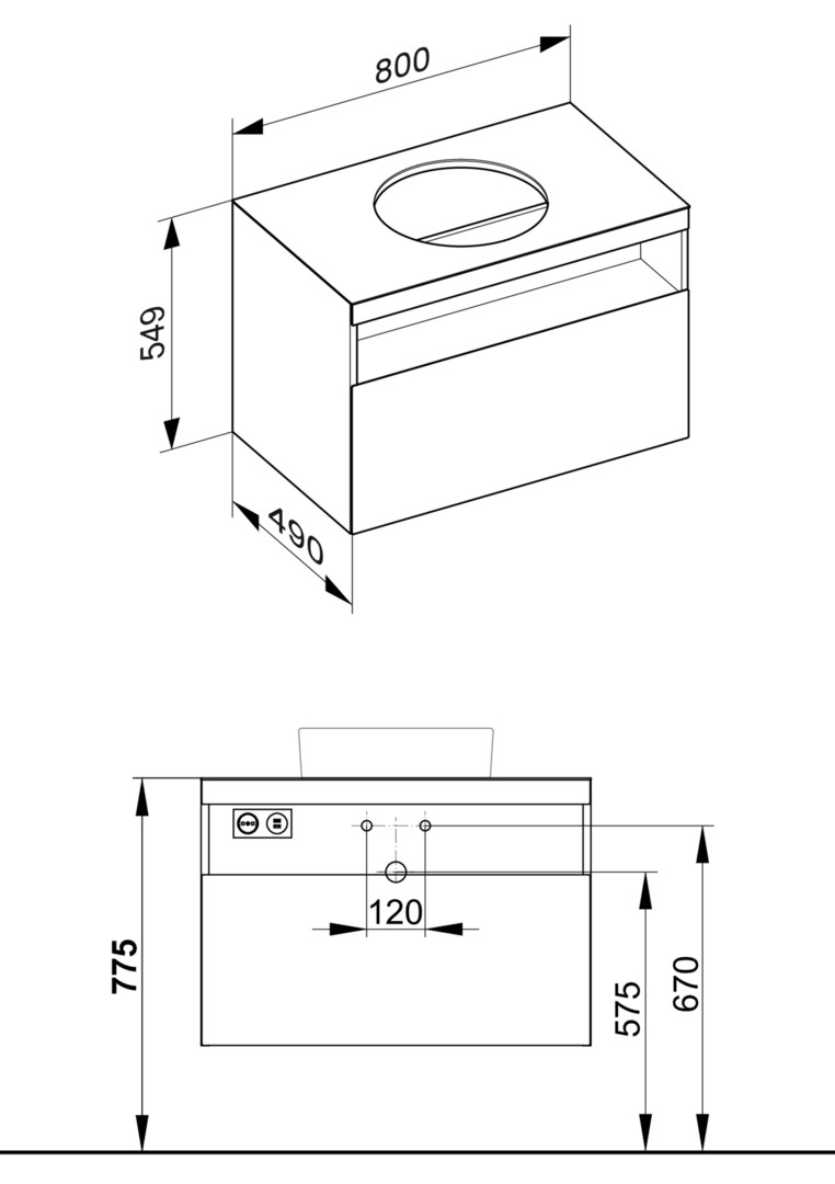 ohne Hahnloch, Öffnung durch oberen Eingriff, mit Anschlagdämpfung, Wandmontage, Ausstattung offenes Ablagefach über die ganze Breite, Geruchsverschluss G 1 1/4 x 32, Einlegematte, Beleuchtung ein-/ausschalten über integrierten Touch-Sensor oder Raumschalter, 3000 Kelvin (warmweiß), Fachbeleuchtung, LED, Netzanschluss erforderlich, Elektrik 1 Steckdose, 1 USB und 1 USB-C Ladestelle, optionale Inneneinteilung Breite 65 cm 1x Größe M, Breite 80 cm 1x Größe L, Breite 100 cm 1x Größe M und 1x Größe L, Breite 120 cm 2x Größe L, für Aufsatzwaschtische