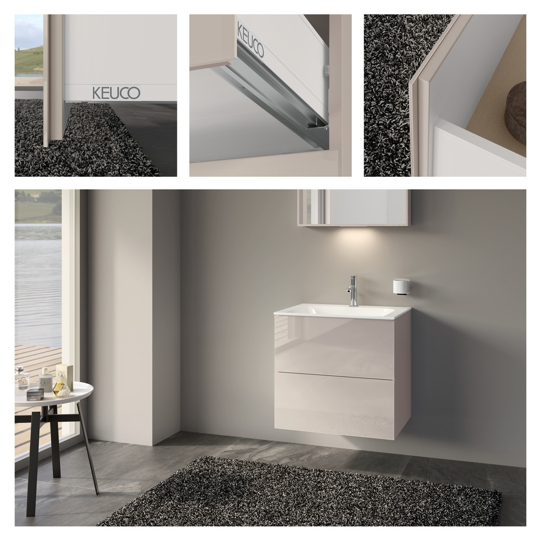 KEUCO Waschtisch-Unterschrank X-Line Dekor cashmere matt, Glas cashmere klar, 65x60,5x49cm, 2 Frontauszüge