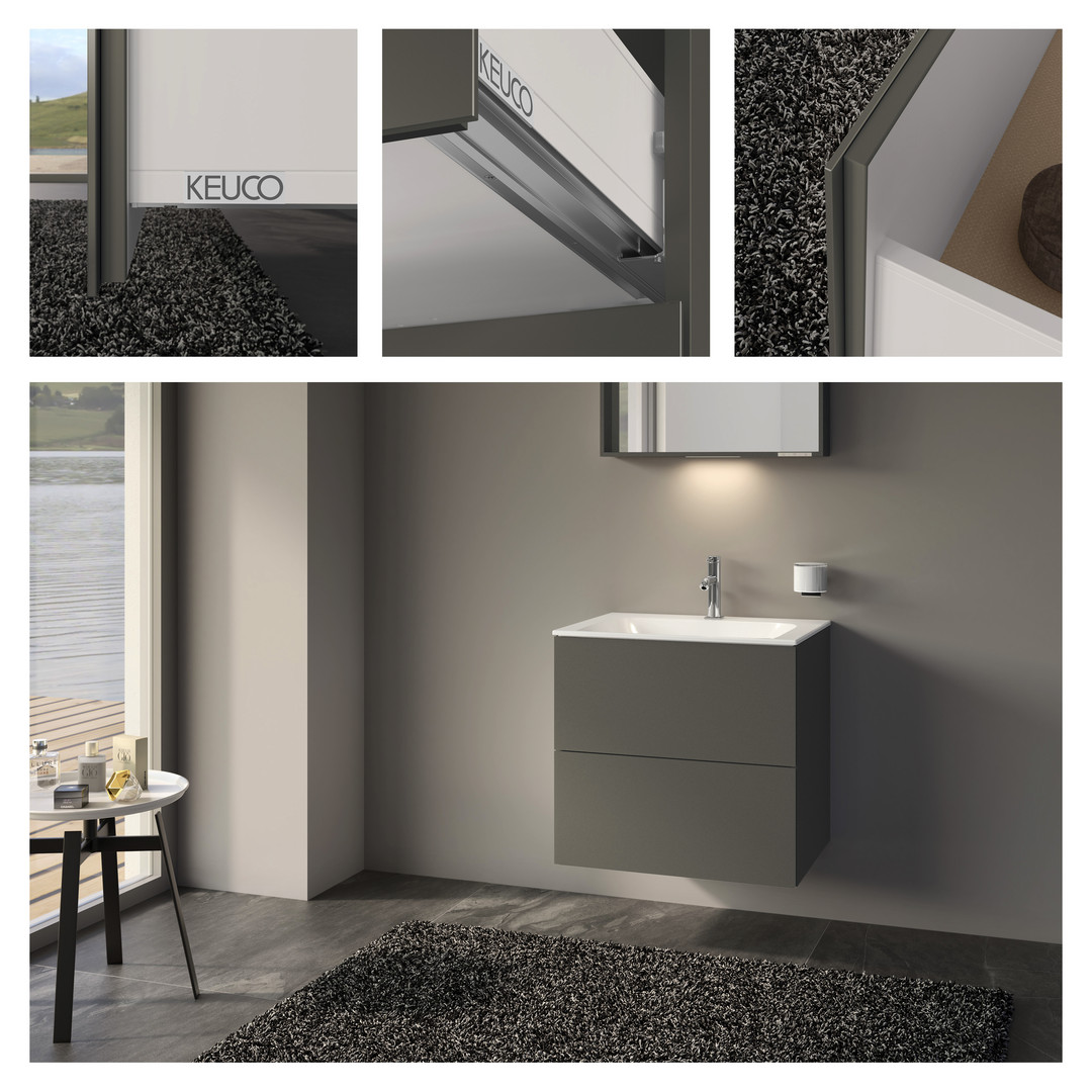 KEUCO Waschtisch-Unterschrank X-Line Dekor anthrazit seidenmatt, Glas anthrazit klar, 65x60,5x49cm, 2 Frontauszüge KE33153110000
