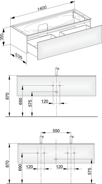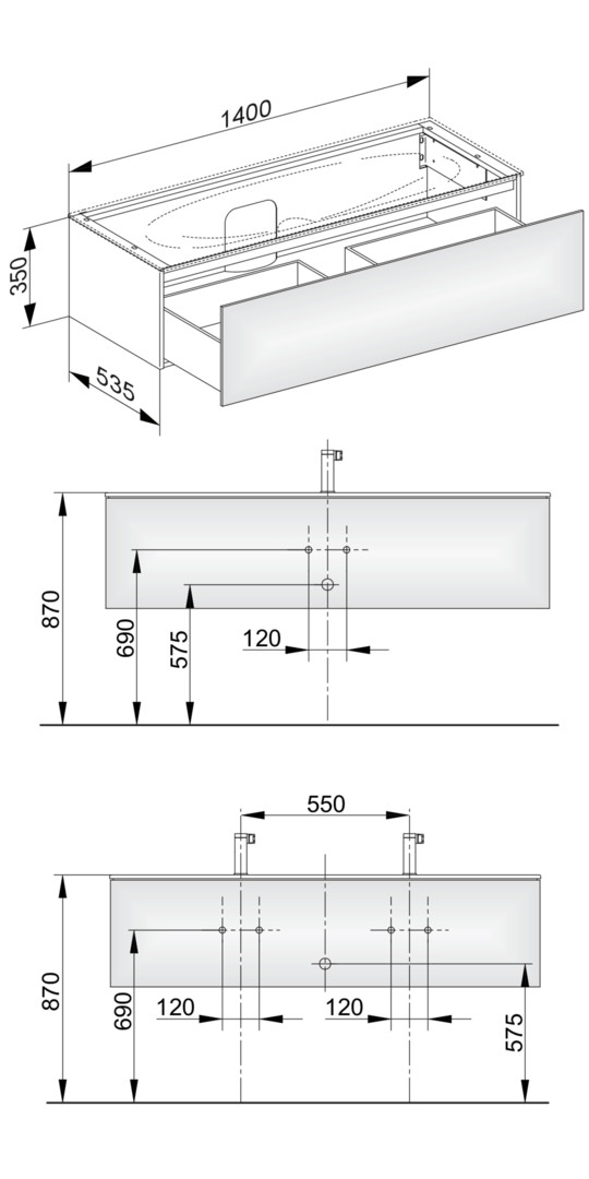 KEUCO Waschtischunterschrank Edition 11 140x35x53,5cm, 1 Frontauszug, Strukturlack Anthrazit KE31361390000