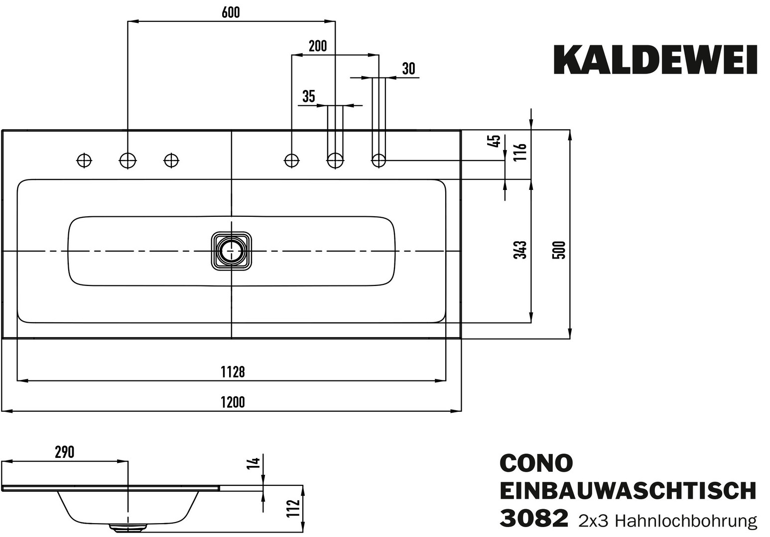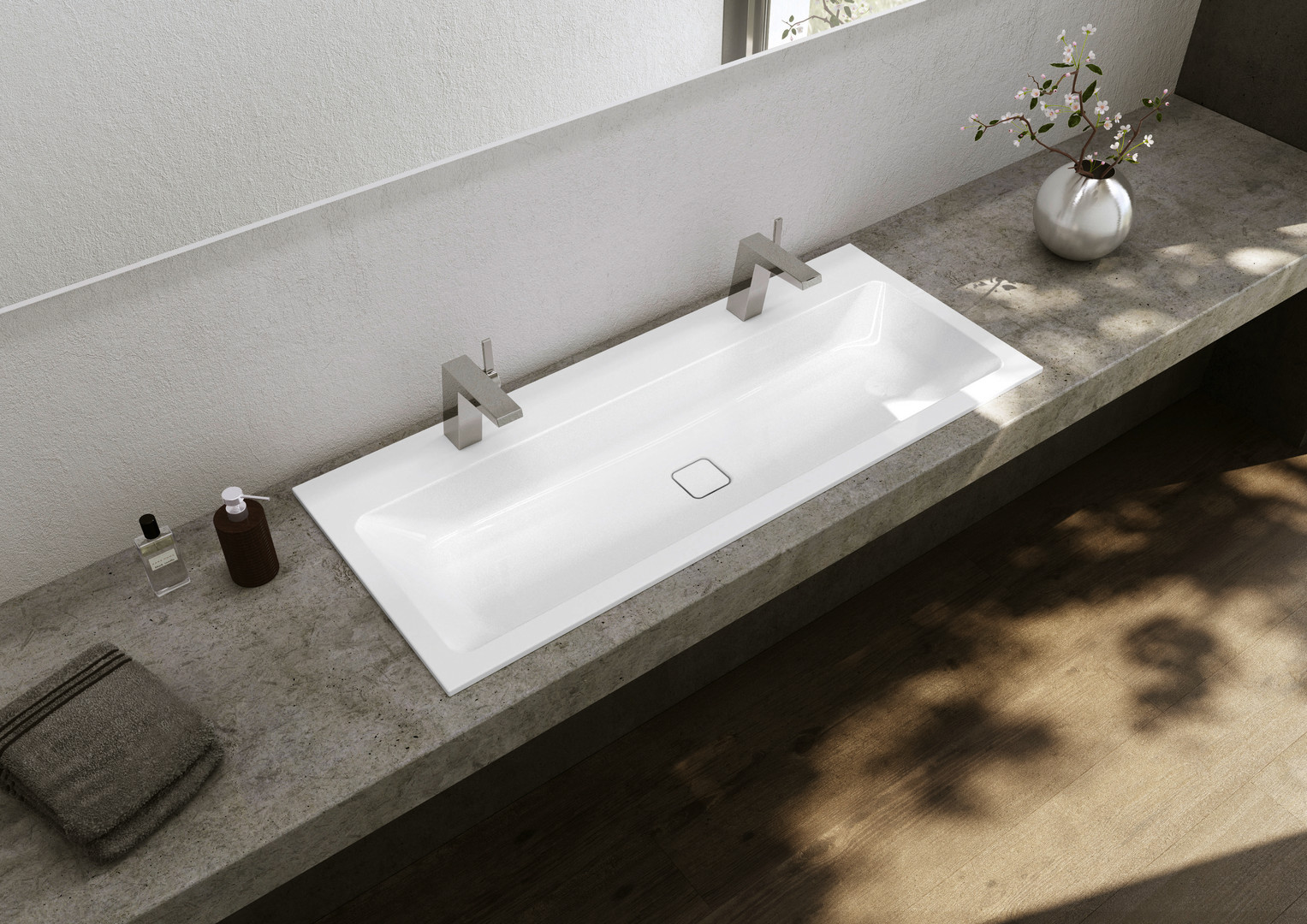 Kaldewei Einbau-Waschtisch CONO 3082-D 120x50cm, 2 x 1 Hahnloch, chrom, Perl-Effekt, alpinweiß KA901806043001