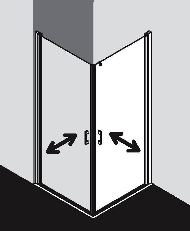 kompletter Eckeinstieg besteht aus LI 1ER Eckeinstieg Halbteil rechts und LI 1EL Eckeinstieg Halbteil links, Halbteile unterschiedlicher Breite beliebig kombinierbar, Kombination mit LI 2CR/L Eckeinstieg 2-teilig (Pendel-Falttüren) Halbteil/LI EPR/L Eckeinstieg 2-teilig (Pendeltüren mit Festfeldern) Halbteil möglich, teilgerahmter Eckeinstieg mit zwei Glasflügeln, nach innen und außen öffnend, Verglasung mit 5 mm Einscheiben-Sicherheitsglas nach DIN EN 12150, Profile aus eloxiertem Aluminium, Griffe aus Metall, Verstellmöglichkeit im Wandprofil 25 mm, Profilgelenk mit Hebe-Senk-Mechanismus, durchgehende Magnetleisten und Dichtprofile, waagerechte Dichtleiste in Dachrinnenform, mit Bodenschwelle (Höhe 6 mm) oder ohne Bodenschwelle (bodenfrei) installierbar, Konstruktionsbedingt ist keine absolute Abdichtung erreichbar, im Lieferumfang enthalten: Befestigungsmaterial, ein transparenter Handtuchhalter-Haken, geprüft nach DIN EN 14428 (CE) und PPP 53005 (TÜV/GS), 20 Jahre Ersatzteil-Nachkaufsicherheit nach Auslauf des Modells, alle Maßangaben bei lotgerechten Wänden, Schräge waagerecht max. 5 mm, Verbreiterung durch Stockverbreiterung ZDSV SV1 LI....K