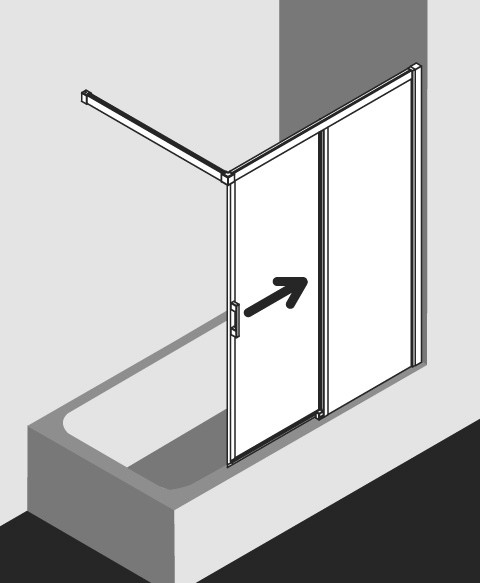 zum Einbau auf Badewanne, teilgerahmte Tür mit einem Gleittürsegment, nach einer Seite öffnend, mit Wandstütze, Verglasung mit 4 mm Einscheiben-Sicherheitsglas nach EN 12150, optional mit Pflegeleicht-Beschichtung Clean, Profile aus hochwertigem eloxiertem Aluminium, Griffe aus hochwertigem Metall, Verstellmöglichkeit im Wandprofil 25 mm, Gleittürsegment zur Reinigung nach innen schwenkbar, hochwertig kugelgelagerte Laufrollen, durchgehende Dichtprofile, waagerechte Dichtleiste mit Wasserabpralleffekt, erfüllt die Anforderung der Spritzwasserprüfung nach DIN EN 14428, mit Befestigungsmaterial