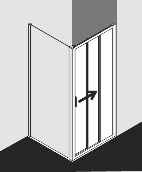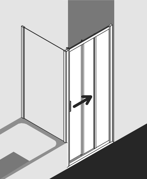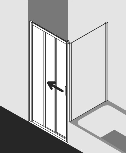 Kermi Wake Up Gleittür 3-tlg. mit Festfeld silber/hochglanz, 90 x 200 cm, links, ESG klar Clean EX06081210104