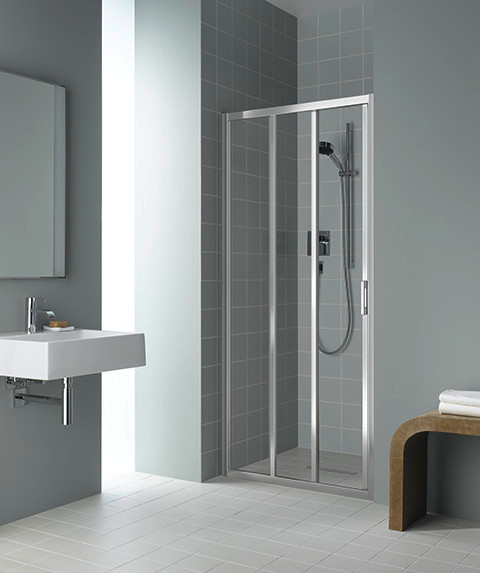 Kermi Wake Up Gleittür 3-tlg. mit Festfeld silber/hochglanz, 100 x 200 cm, links, ESG klar Clean