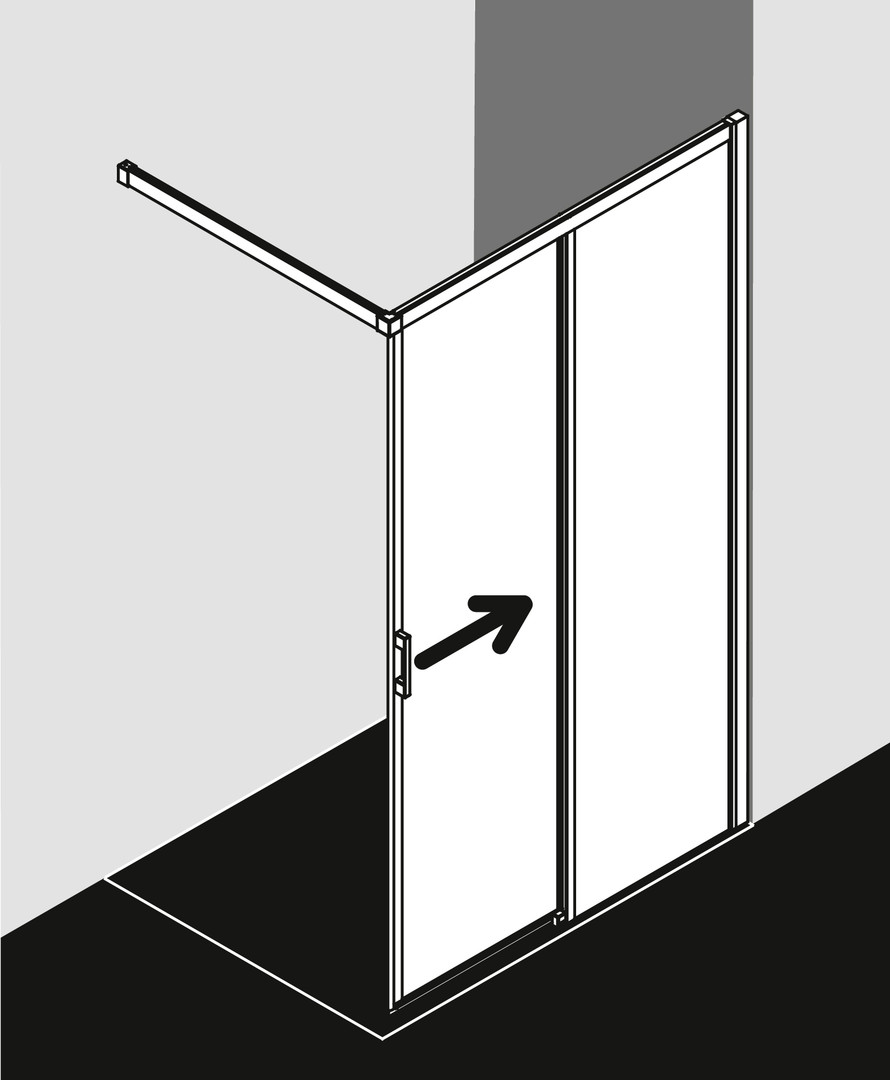 teilgerahmt, mit einem Gleittürsegment, nach einer Seite öffnend, mit Wandstütze, Verglasung mit 4 mm Einscheiben-Sicherheitsglas, nach EN 12150, optional mit Pflegeleicht-Beschichtung Clean, Profile aus hochwertigem eloxiertem Aluminium, Griffe aus hochwertigem Metall, Verstellmöglichkeit im Wandprofil 25 mm, Gleittürsegment zur Reinigung nach innen schwenkbar, hochwertig kugelgelagerte Laufrollen, durchgehende Magnetleisten und Dichtprofile, waagerechte Dichtleiste mit Wasserabpralleffekt, erfüllt die Anforderungen der Spritzwasserprüfung nach DIN EN 14428, mit Befestigungsmaterial
