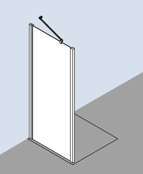zur Kombination mit allen Liga Türen für Ecke und U-Kabine, teilgerahmt, Glasstärke 5 mm, Profile aus Auminium, Verstellmöglichkeit in Wandprofil 25 mm, mit Befestigungsmaterial, geprüft nach DIN EN 14428 (CE) und PPP 53005 (TÜV/GS), die waagerechte Schräge darf max. 5 mm betragen