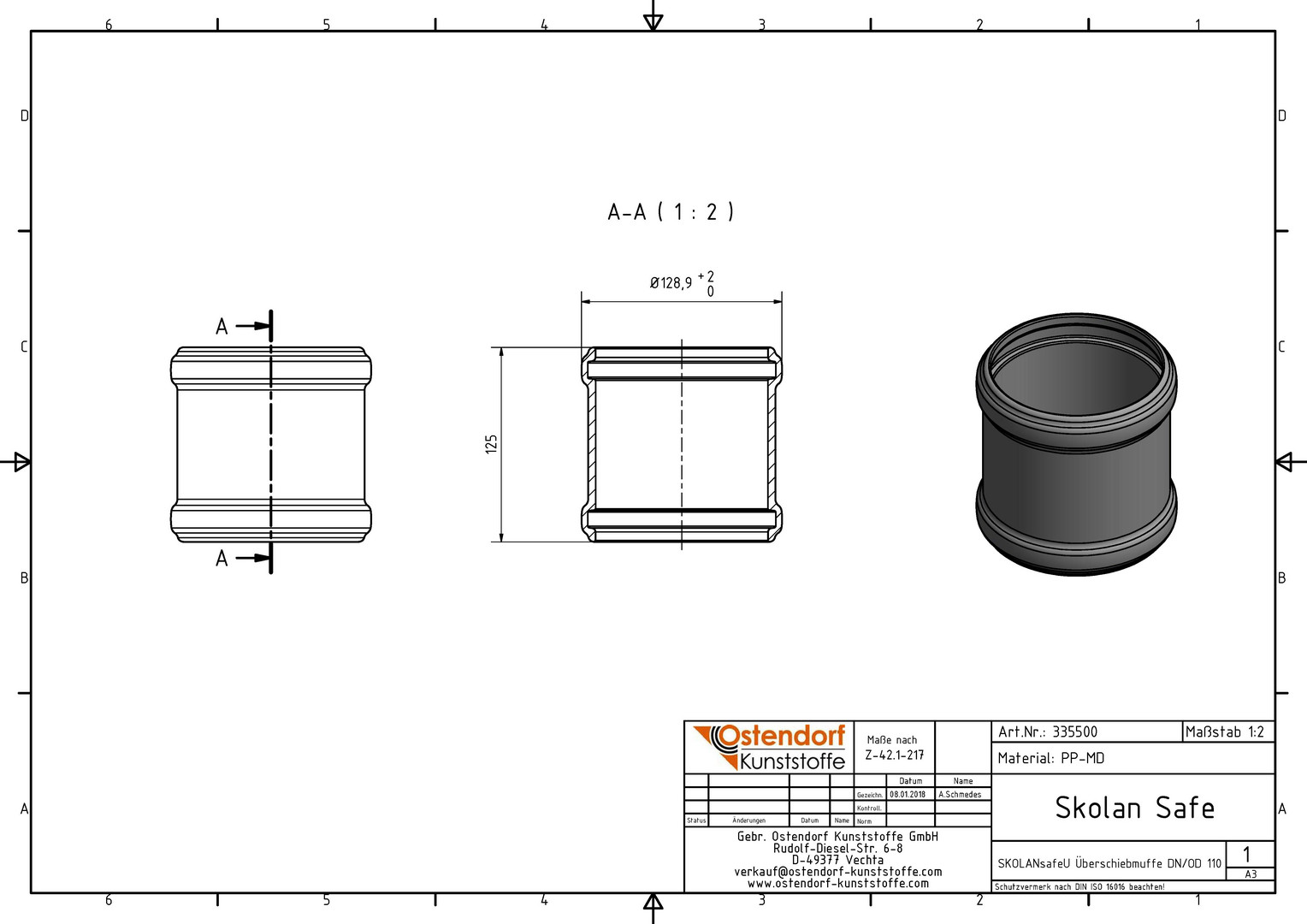 Ostendorf SKOLANsafe Überschiebmuffe U DN/OD 110