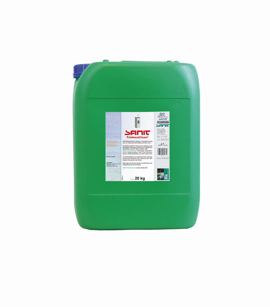 für die Behandlung von Geräten mit Trinkwassernutzung während der Sanitation/Wartung, wie z.B. Wasserspender, Heißgetränkeautomaten ect., gegen Legionellen, E-Coli, Pseudonomaden, Viren, Pilze und deren Sporen und Fäkalstreptokokken, kein Gefahrstoff