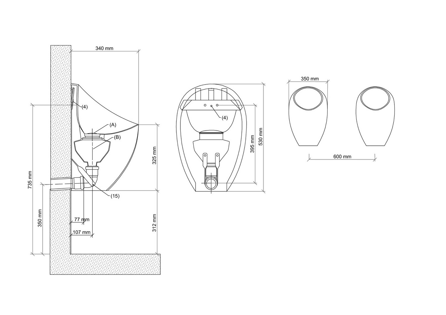 Sanit Urinal Cadet Glasfiber, Anschluss horizontal, grau