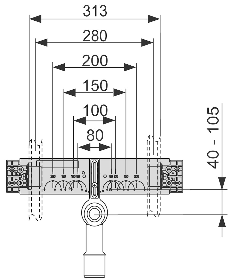 TECE Anschlusseinheit TECEprofil aus verzinktem Stahl, ohne Wandscheiben, für Waschtisch