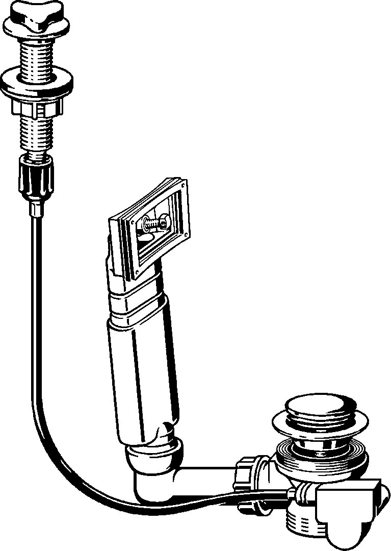 für Spülen, mit verchromter Drehgriffbetätigung, mit Ventiloberteil aus Edelstahl, mit höhenverstellbarem Überlaufrohr, mit Kugelgelenk, Ventilkegel verchromt, mit Überlaufdichtung (für gerade und gebogene Spülenwände)
