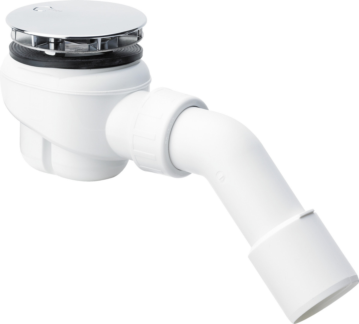 mit herausnehmbarem Geruchsverschluss, Abdeckhaube verchromt und 45° Ablaufbogen, Sperrwasserhöhe 50 mm, Ablaufleistung Anstauhöhe 120 mm 0,73 l/s, güteüberwacht nach DIN EN 274
