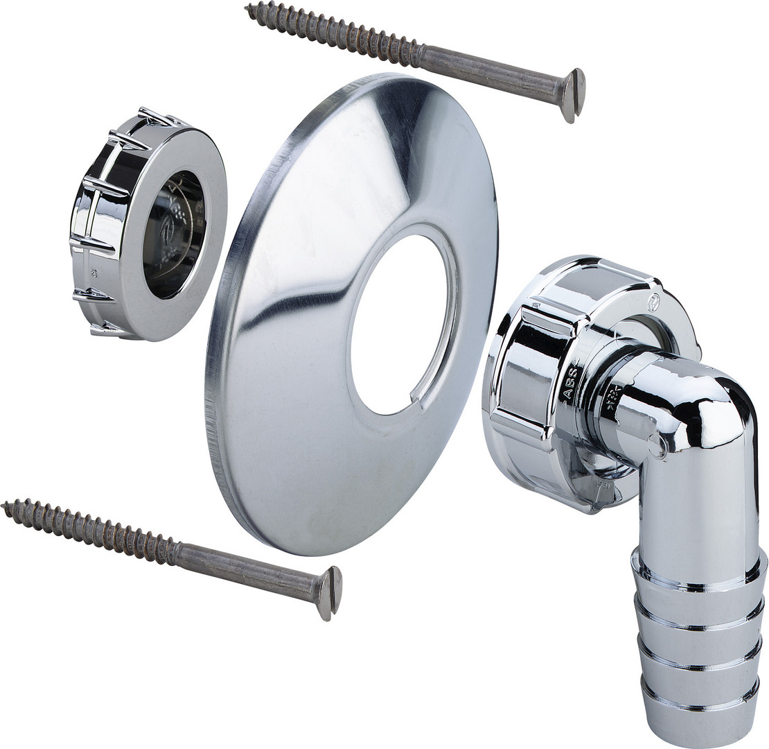 mit Kappe verchromt, Rosette aus Edelstahl, mit Befestigungsschrauben, für den Abwasserschlauch einer Wasch- oder Geschirrspülmaschine, geeignet für Geruchverschluss Modell 5635.7
