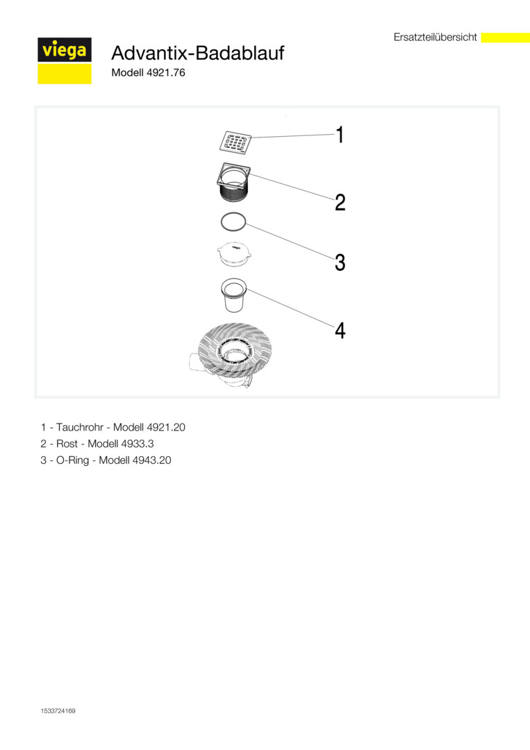 Viega Badablauf Advantix 4921.76 DN 50, Kunststoff grau, mit Aufsatz, Ablauf waagerecht