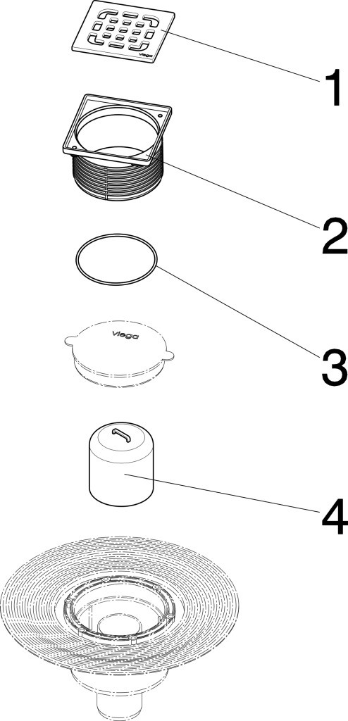 Viega Badablauf Advantix 4926 DN 50, Kunststoff grau, mit Aufsatz, Ablauf senkrecht