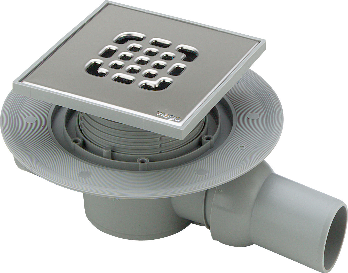 Viega Badablauf Advantix 4935.2 DN 50, Kunststoff grau, mit Aufsatz 150 x 150, Ablauf waagerecht