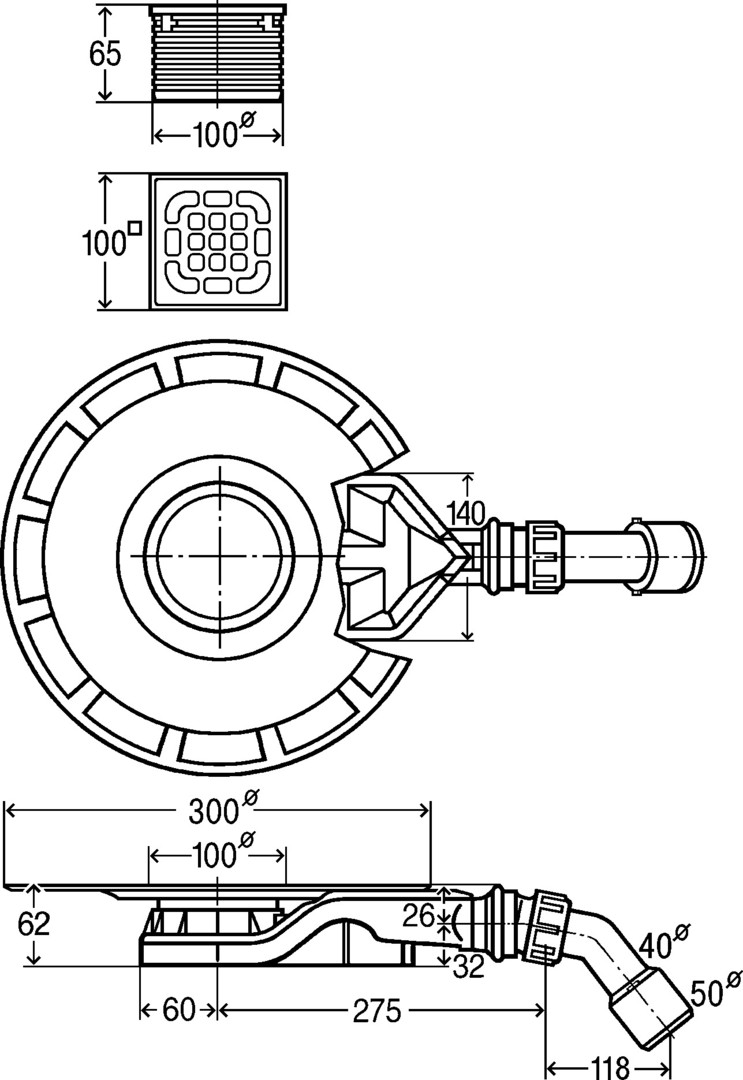 für Verbundabdichtung (geflieste Dusche) mit Abdichtungsmatte, Systemmaß 100, bestehend aus Aufsatz mit Rahmen Kunststoff, Rost Edelstahl 1.4301, Bauschutz, Schlüter-KERDI-Abdichtungsmanschette, Abdichtungsflansch, Geruchverschluss herausnehmbar, Ablaufbogen 45° verstellbar, Belastungsklasse K=300 kg, Sperrwasserhöhe 25 mm, Ablaufleistung Anstauhöhe 10 mm 0,5 l/s, Ablaufleistung Anstauhöhe 20 mm 0,55 l/s, Ablaufleistung nach DIN EN 1253