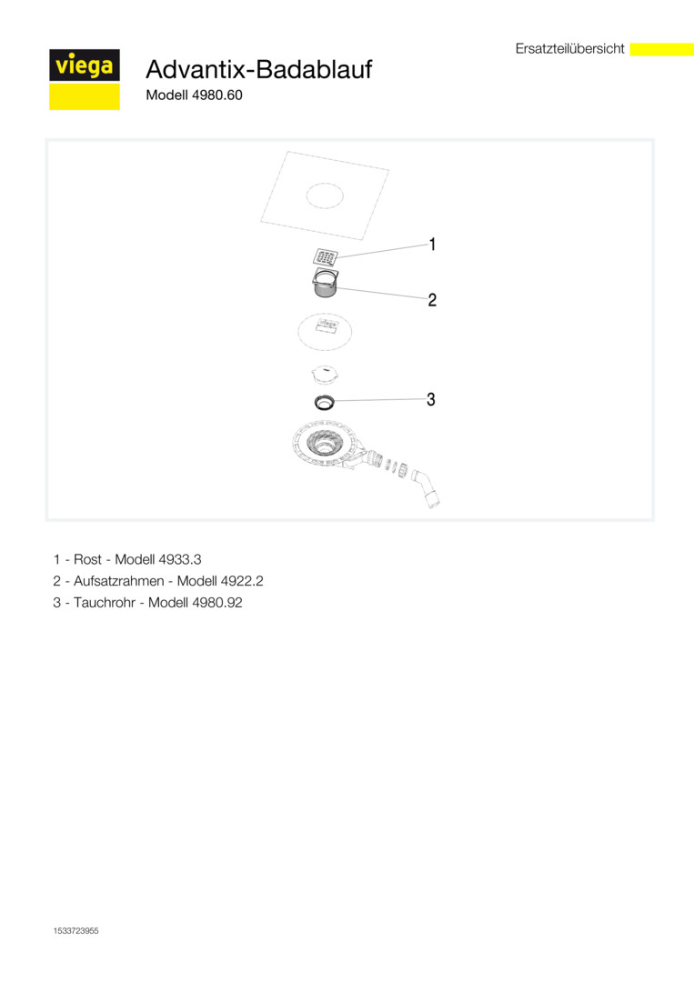Viega Badablauf Advantix 4980.60 DN 40/50, BH 62mm, Kunststoff, mit Aufsatz