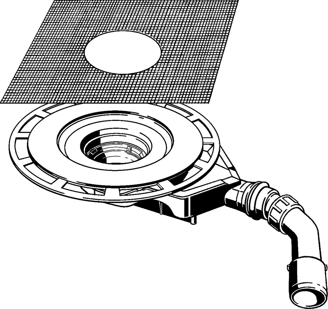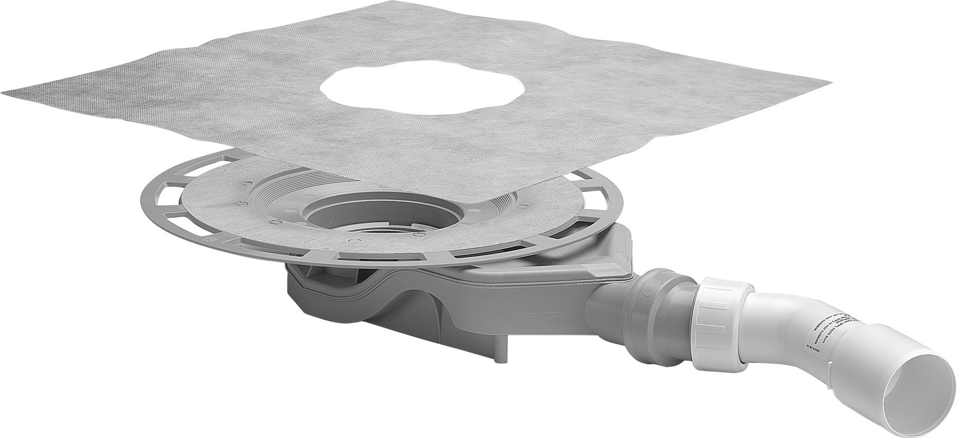 für Verbundabdichtung (geflieste Dusche) mit Abdichtungsmatte, ohne Aufsatz, Systemmaß 100, bestehend aus Bauschutz, Schlüter-KERDI-Abdichtungsmanschette, Abdichtungsflansch, Geruchverschluss herausnehmbar, Ablaufbogen 45° verstellbar, Sperrwasserhöhe 25 mm, Ablaufleistung Anstauhöhe 10 mm 0,5 l/s, Ablaufleistung Anstauhöhe 20 mm 0,55 l/s, Ablaufleistung nach DIN EN 1253