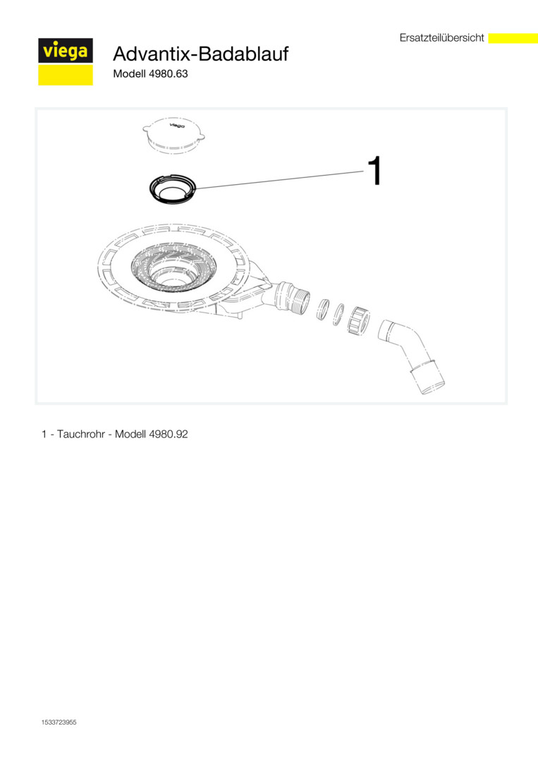 Viega Badablauf Advantix 4980.63 DN 40/50, BH 62 mm, Kunststoff, ohne Aufsatz