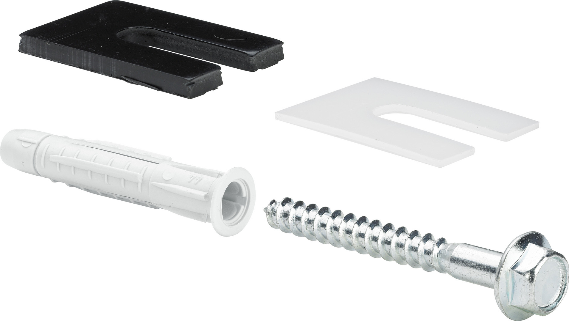 Befestigungsmaterial für die Wand- Boden- oder Deckenbefestigung, mit 10 Schrauben mit Bund, 10 Dübel und Ausgleichsmaterial