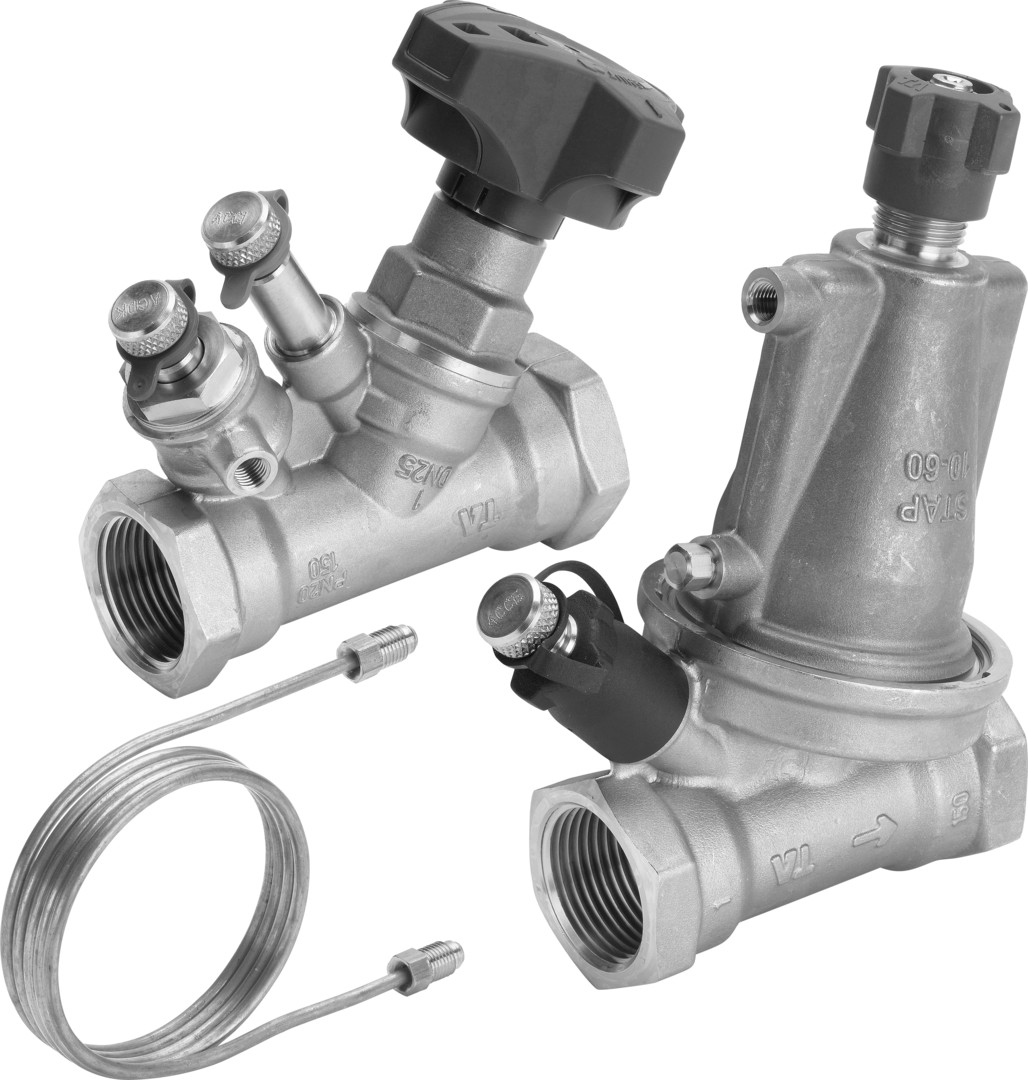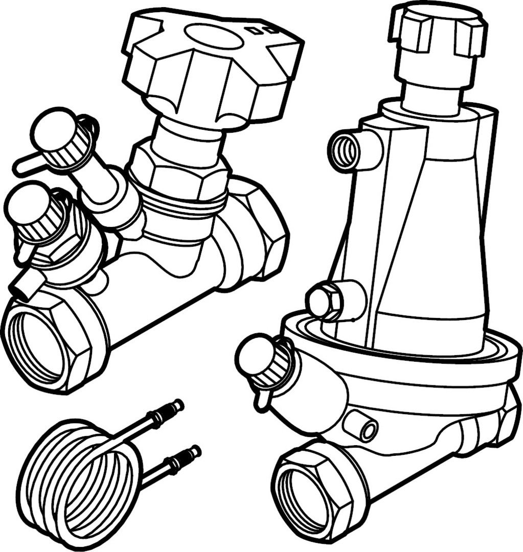 für Flächentemperierung, Regelbereich von 100-600 hPa, geeignet für Fonterra-Heizkreisverteiler DN 25, mit Differenzdruckreglerventil, Regulierventil, Impulsleitung, 2 Nippel G 1
