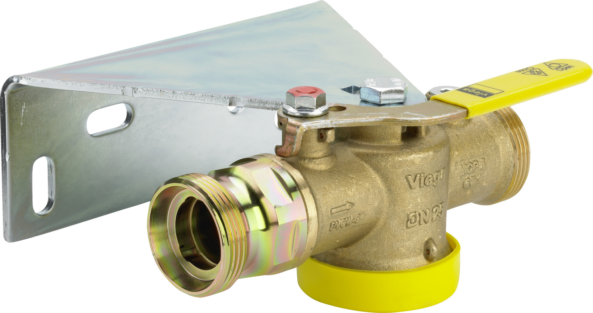 für Einstutzengaszähler, G-Gewinde, abschließbar, plombierbar, Durchgangsform, mit Prüföffnung < 1 mm, Wandhalterung/Befestigungsset, Prüfschraube G 1/8, Umgebungstemperatur max. 70 °C, Betriebsdruck max. 0,5 MPa (MOP 5), höher thermisch belastbar, 650 °C/30 min GT1, mit DIN-DVGW-G-Prüfzeichen