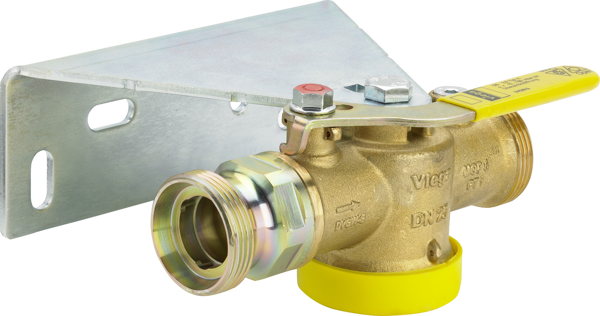 Viega Gaszählerkugelhahn G2112.2S G 1 3/8, 2,5 cbm, Messing, Durchgang, mit Gasströmungswächter K