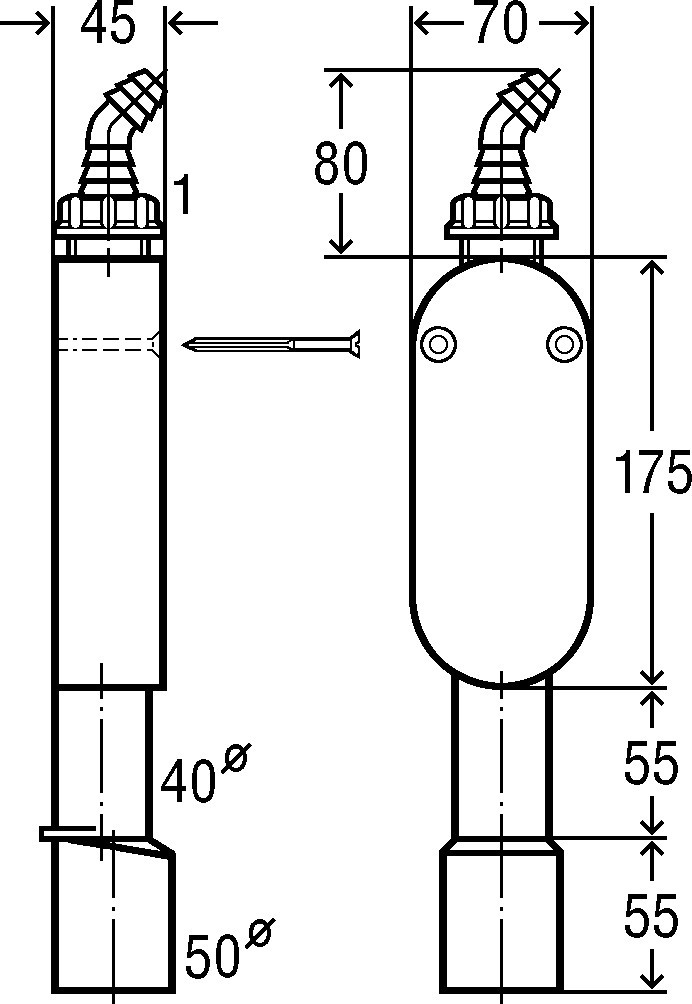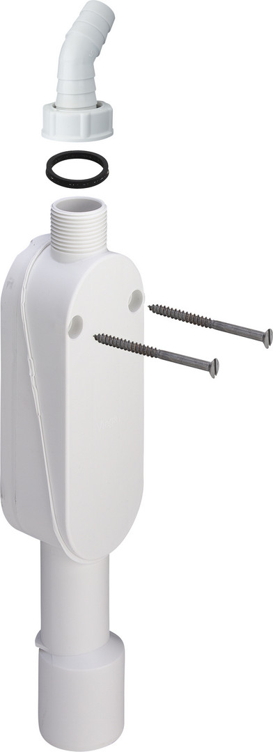 für Wandmontage, für den Abwasserschlauch einer Wasch- oder Geschirrspülmaschine, mit Schlauchverschraubung 45°, mit Befestigungsschrauben, güteüberwacht nach DIN 19541