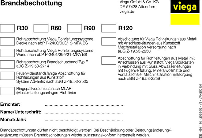 Viega Kennzeichnungsschild 4920.8 für Rohrdurchführung, Brandschutz
