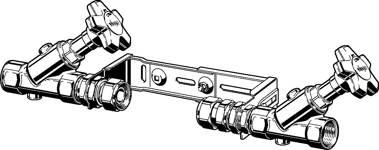 für Wasserzähler, ausgestattet mit Easytop-K RV-Schrägsitzventil Modell 2230.92, Easytop-Schrägsitzventil Modell 2230.53, Eingang Easytop-Schrägsitzventil (Freistromventil), Ausgang Easytop-KRV-Schrägsitzventil (Freistromventil mit Rückflussverhinderer), tiefenverstellbar, längenverstellbar, einstellbar für waagerechten und senkrechten Wasserzählereinbau, bestehend aus Ventilgehäuse und wasserberührende Teile Rotguss oder Siliziumbronze nach DIN 50930-6/DIN EN 1982, Ventilsitz und Ventiltellereinheit Edelstahl, Montageplatte Edelstahl rostfrei, eingangsseitig Wasserzählerverschraubung plombierbar, ausgangsseitig Wasserzählerverschraubung längenverstellbar, Befestigungsmaterial, Betriebsdruck max. 1,6 MPa (PN 16), mit DVGW-Prüfzeichen