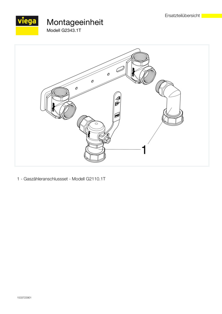 Viega Montageeinheit G2343.1T Rp 1, Messing, mit TAE, für Zweistutzengaszähler