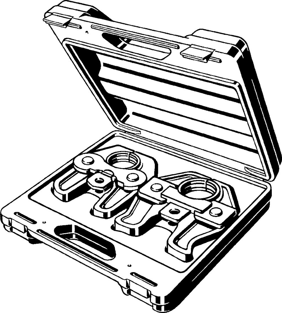 für Sanfix Fosta, empfohlen für Pressgun 6 Plus, Pressgun 6, Pressgun 6B, Pressgun 5, Pressgun 4B und 4E, Pressmaschinen PT3-H/EH, PT3-AH und Typ 2 (PT2), Akku-Pressmaschinen des Herstellers Holger Clasen, Geberit/Mepla-Pressmaschinen Typ PWH 75, Typ N 230 V und Typ N Akku, Geberit/Mapress-Pressmaschinen Typ EFPII, ACO 1, ECO 1, ACO 201, ECO 201, AFP 201, EFP 201, ACO 202 und ECO 202, Ridgid-Pressmaschinen RP 10-S, RP 10-B, RP 330C/330B, RP 340, mit Pressbacke P T2