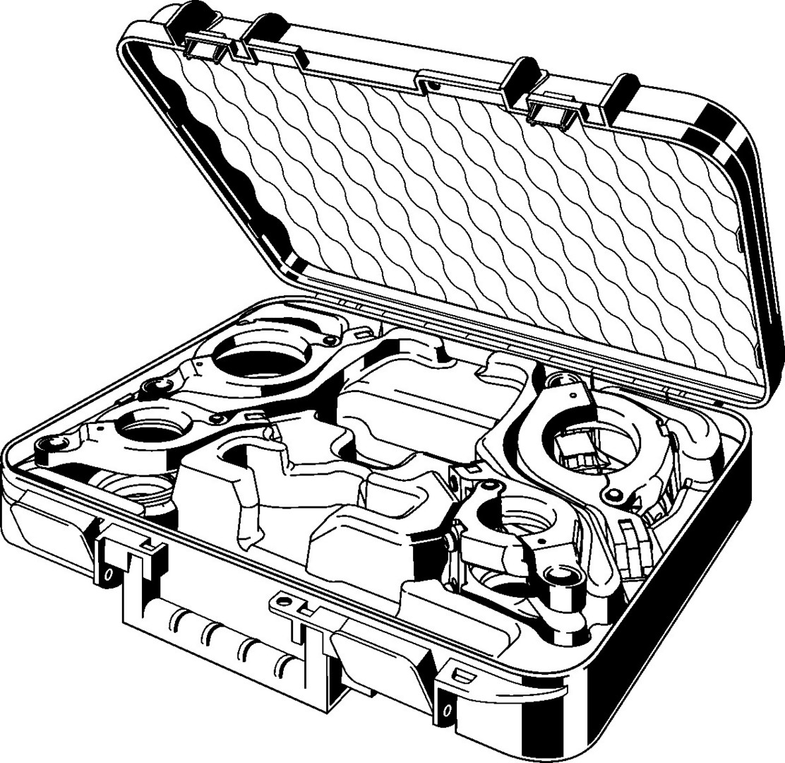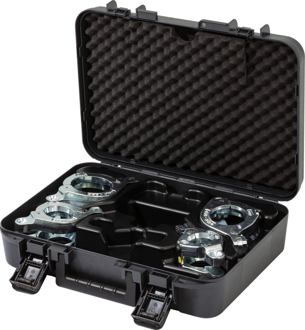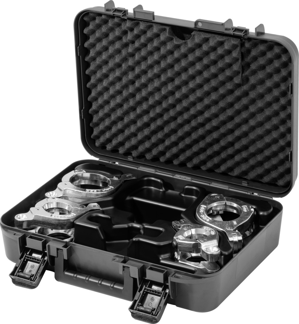 für Geopress K, empfohlen für Pressgun 6 Plus, Pressgun 6, Pressgun 6B, Pressgun 5, Pressgun 4B und 4E, Pressmaschinen PT3-H/EH, PT3-AH und Typ 2 (PT2), Akku-Pressmaschinen des Herstellers Holger Clasen, Geberit/Mepla-Pressmaschinen Typ PWH 75, Typ N 230 V und Typ N Akku, Geberit/Mapress-Pressmaschinen Typ EFPII, ACO 1, ECO 1, ACO 201, ECO 201, AFP 201, EFP 201, ACO 202 und ECO 202, Ridgid-Pressmaschinen RP 10-S, RP 10-B, RP 330C/330B, RP 340, ausgestattet mit Pressring, Koffer mit Platzhalter für Pressring d25 und Pressringantrieb, Gelenkzugbacke Z2, Arbeiten im Erdreich sind mit geeigneten Akku-Pressmaschinen auszuführen