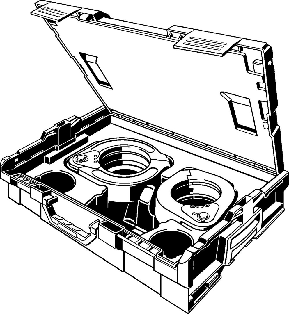 für Sanpress Inox XL, Profipress XL, Prestabo XL, empfohlen für Pressgun 6 Plus, Pressgun 6, Pressgun 6B, Pressgun 5, Pressgun 4B und 4E, Pressmaschinen PT3-H/EH, PT3-AH und Typ 2 (PT2), Akku-Pressmaschinen des Herstellers Holger Clasen, Geberit/Mepla-Pressmaschinen Typ PWH 75, Typ N 230 V und Typ N Akku, Geberit/Mapress-Pressmaschinen Typ EFPII, ACO 1, ECO 1, ACO 201, ECO 201, AFP 201, EFP 201, ACO 202 und ECO 202, Ridgid-Pressmaschinen RP 10-S, RP 10-B, RP 330C/330B, RP 340, nicht geeignet für Sanpress XL (Rotguss), Megapress XL, mit Systemkoffer, Koffereinsatz Pressringe, Deckeleinlage, Gelenkzugbacke PT2, Pressring, Platzhalter für Gelenkzugbacke PT2