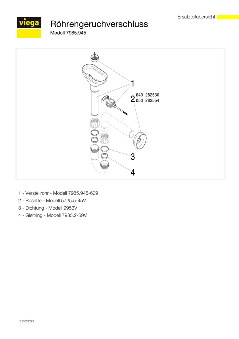 Viega Röhrengeruchsverschluss 7985.945 DN 50, Kunststoff weiß, mit Trichter
