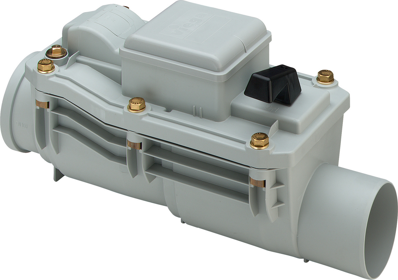 für regenwasserführende Leitung, 2-fache Rückstausicherung (einmal automatisch und ein manueller Notverschluss), mit Pendelklappe, Handbetätigung, güteüberwacht nach DIN EN 13564