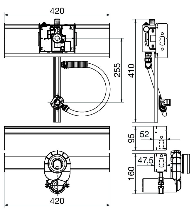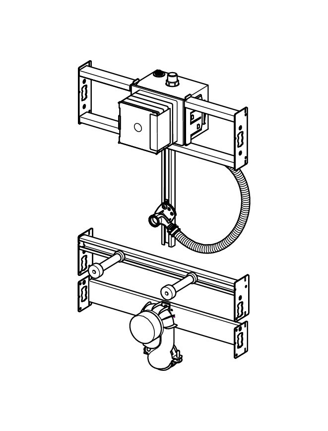 Stahl verzinkt, integrierbar in Prevista Dry Plus-Schienensystem, kompatibel mit allen Urinal-Betätigungsplatten für Prevista, für Wasseranschluss universell, bestehend aus: Urinal-Spülsystem-Rohbauset schallgeschützt, Wasseranschluss R 1/2, Urinal-Anschlussgarnitur, mit Befestigungsmaterial für Modul und Keramik, Absaugeformstück, Belastung max. 150 kg