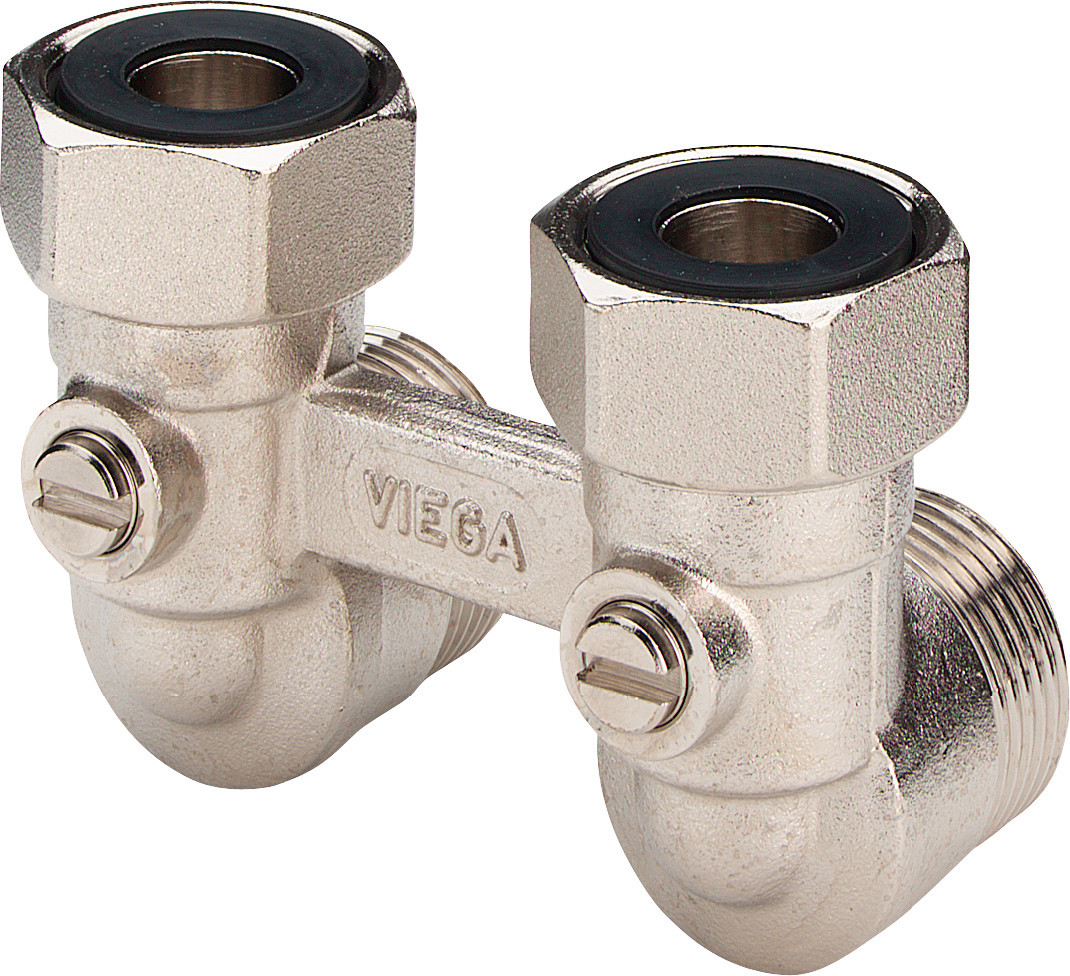 Viega Ventilheizkörperanschlussstück 1097.5 G 3/4 x 50 mm, Messing matt vernickelt, winklig, absperrbar