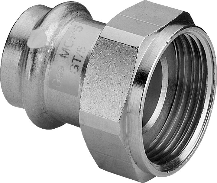 Viega Verschraubung Sanpress Inox G 0263.1 35 mm x G 1 1/2, Stahl nichtrostend, flachdichtend, SC-Contur VI735852