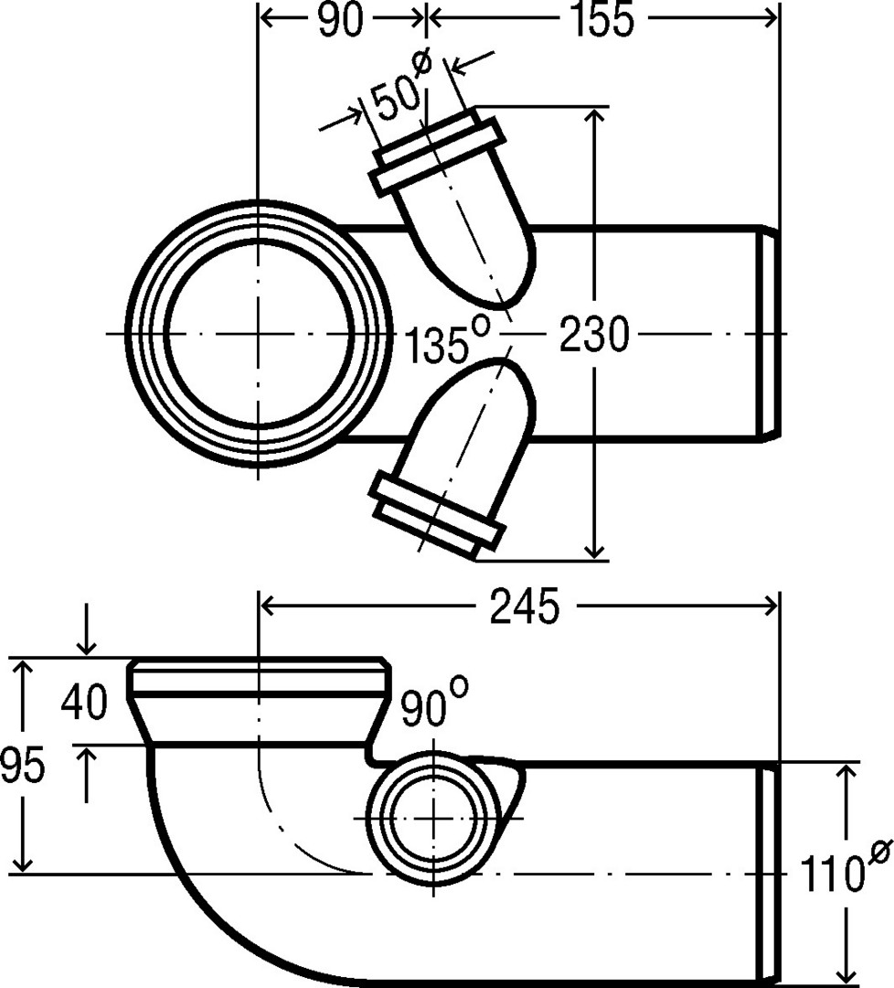 | Rohraußendurchmesser Anschluss 1 | 110 mm |